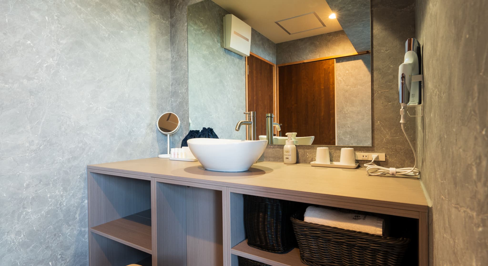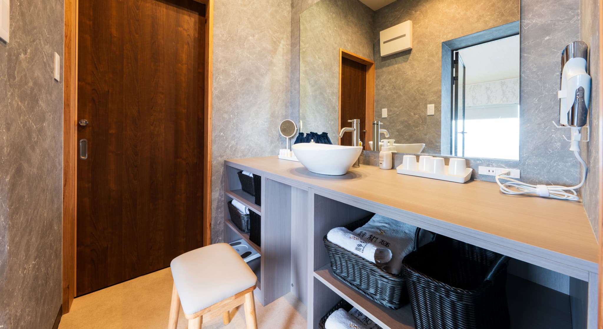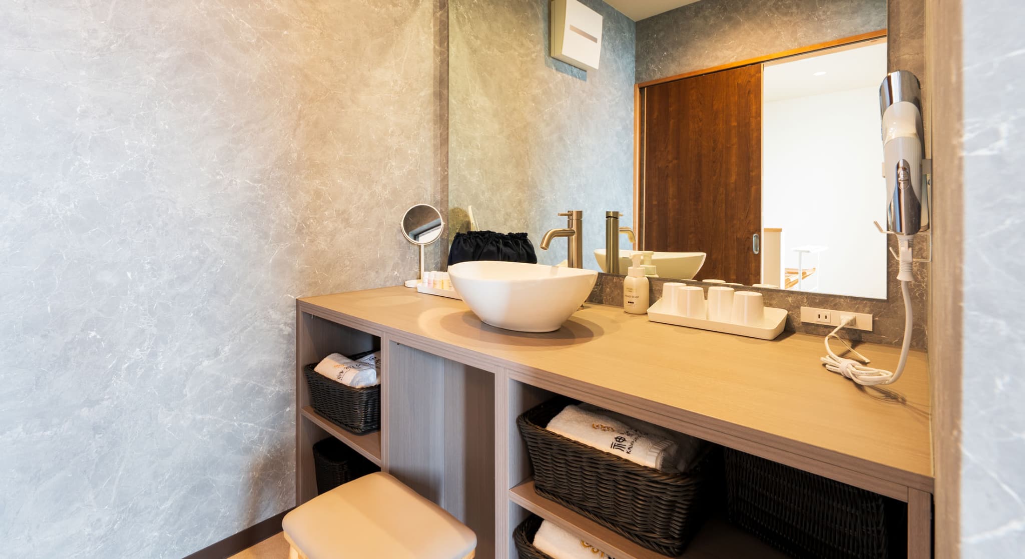 神和苑中腹に佇む【宙(sora)】月の棟に位置する、57㎡の洋室です。源泉100%かけ流しの内風呂・露天風呂を備えており、別府の街を一望。2名様限定、静かに湯を愉しむ上質なひとときをお過ごしください。一部、天井高が低いところがございます。